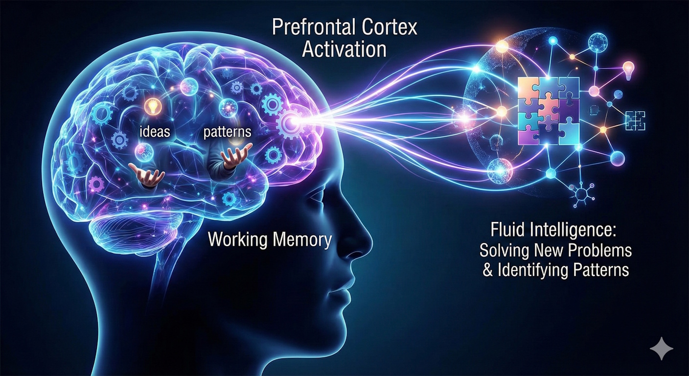 This mental juggling act activates the prefrontal cortex. Studies in cognitive psychology often link strong working memory to better “fluid intelligence”—the capacity to solve new problems and identify patterns.