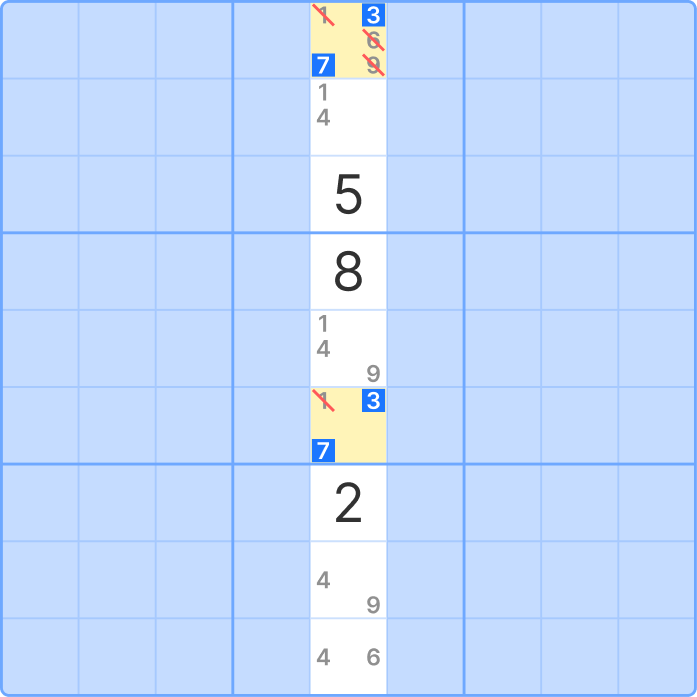 1. As you can see, the values 2 and 6 appear only in two cells of this unit. This means 2 must occupy one of these cells, and 6 must occupy the other